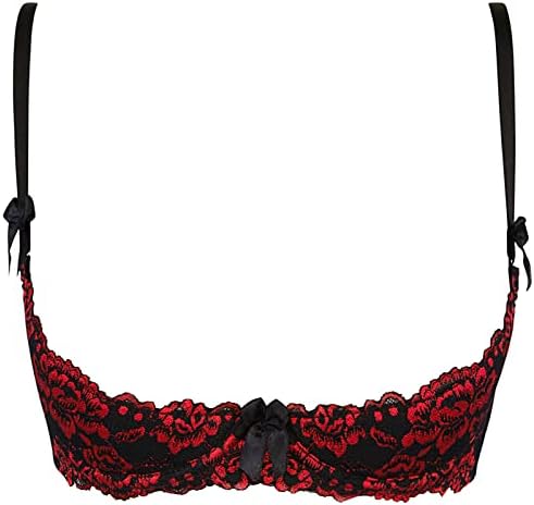 Un sujetador excitante de copa de 1/4 para esos momentos especiales. Confeccionado en exclusivo encaje con diseño floral. El sujetador está preformado y tiene aros para un soporte óptimo. El sujetador tiene aros, un cierre de gancho en la espalda y, por supuesto, los tirantes son ajustables.